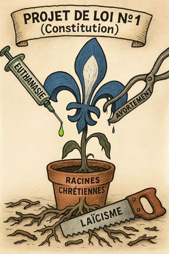 Mais le plus grave demeure le projet de Constitution du Québec, qui inscrit l’avortement, l’euthanasie et le laïcisme. Ce texte ne protège pas le Québec : il le sabote. Le laïcisme le coupe de ses racines, l’avortement de sa relève, l’euthanasie de sa solidarité.
