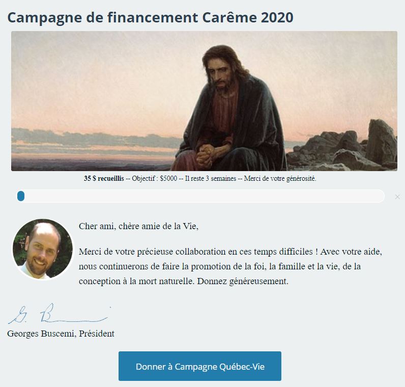 Pour notre part, à Campagne Québec-Vie nous avons décidé de garder le cap. Il y avait un saint à qui on a demandé, lorsqu’il se trouvait à jouer du billard, ce qu’il ferait si on l’apprenait que la fin du monde arrivait. Il a immédiatement répondu « je prendrais le coup suivant ».