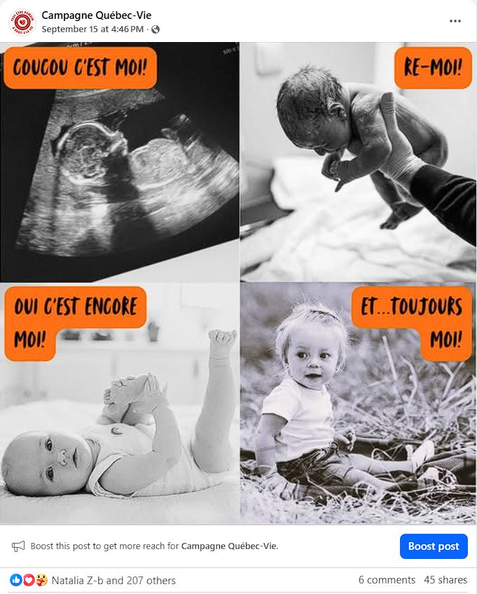 Publication pro-vie populaire sur les réseaux sociaux :