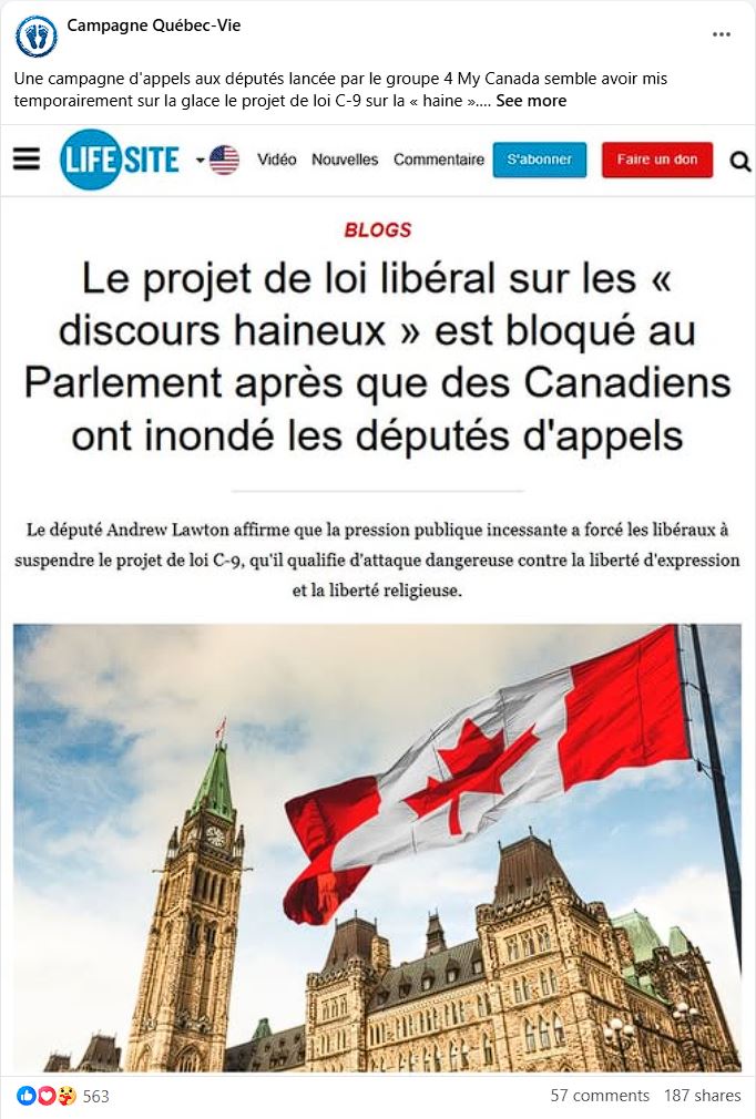 - la vitalité renouvelée du mouvement pro-vie au Québec,