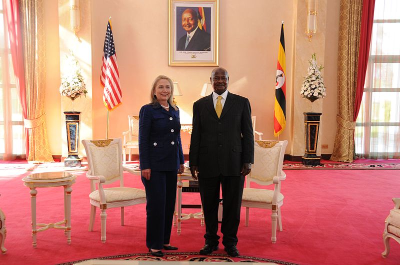 (Hilary Clinton et le président Yoweri Museveni, août 2012)