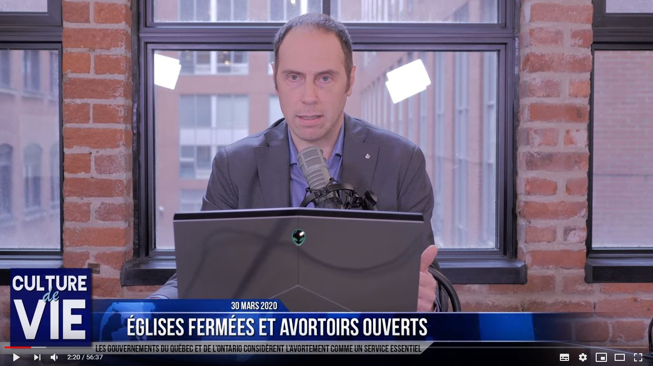Aussi, nous préparons en ce moment un grand dossier sur la crise du Coronavirus, un compte rendu qui mettra, autant que cela soit possible, le tout en perspective, à l’usage de ceux et celles œuvrant pour une Culture de Vie, pour la foi, la famille et la vie, de la conception à la mort naturelle. Ce dossier servira de scénario pour une vidéo que nous allons produire, nous l'espérons, lundi prochain. Je vous ferai part de la publication de ce dossier, dès que possible !
