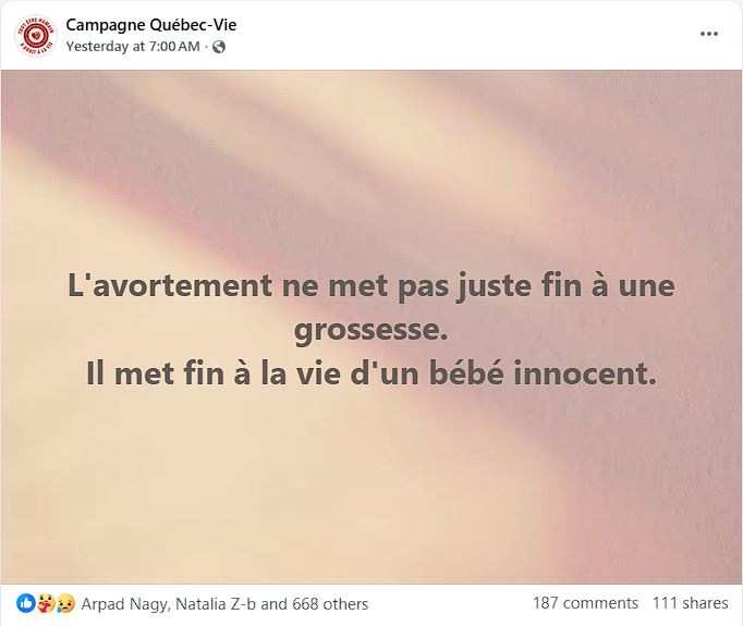 Aussi, nous avons lancé une pétition, un grand merci si vous l'avez déjà signée, adressée à l’Assemblée nationale pour que vous puissiez manifester votre désaccord avec la constitutionnalisation de l’avortement et du laïcisme, ainsi que l’inscription de l’euthanasie dans la Charte des droits et libertés de la personne du Québec.